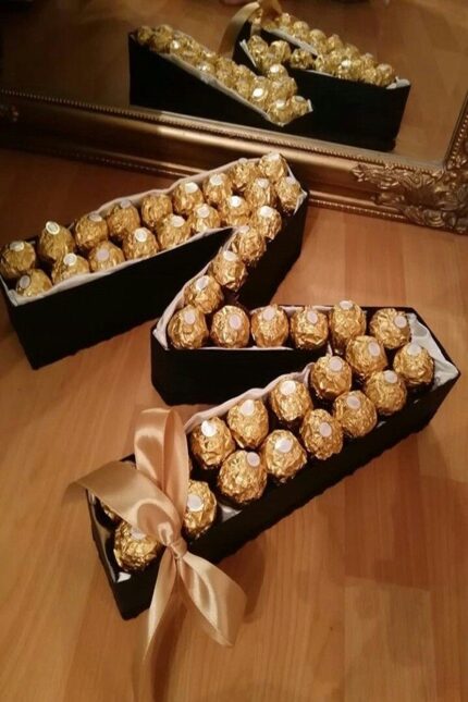 Mounted alphabetic/numeric base Coordinated wrapping paper and ribbon 20 Ferrero Rocher chocolatesINFORMATION: